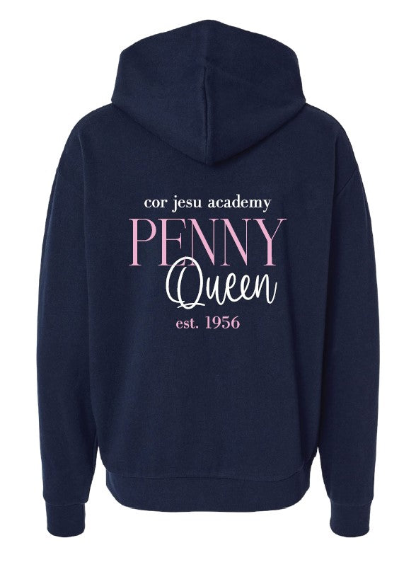 The bridge from the 13th tee is named after Byron Nelson, who won the Master's in 1937. He scored a 2 and 3 on holes 12 & 13. Do you need to know this to wear this hoodie? No. But are you enriched now that you do? Yes. This hoodie! It's amazing. I hear the material is super soft and who doesn't love navy. Navy is Penny's favorite color. You bet she will be sporting this one around the halls of CJ on Thursdays. The simple front "penny queen" with the script on the back? And what's that? Our established year again? Sold. Just sold.